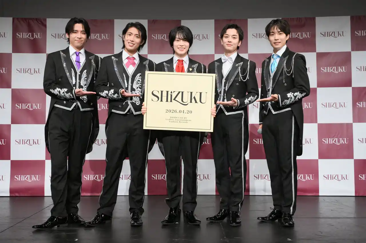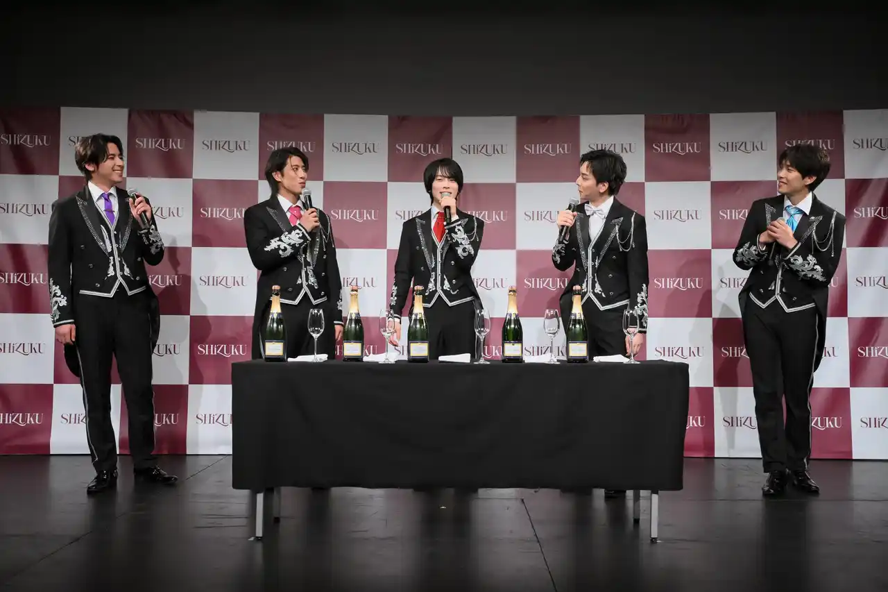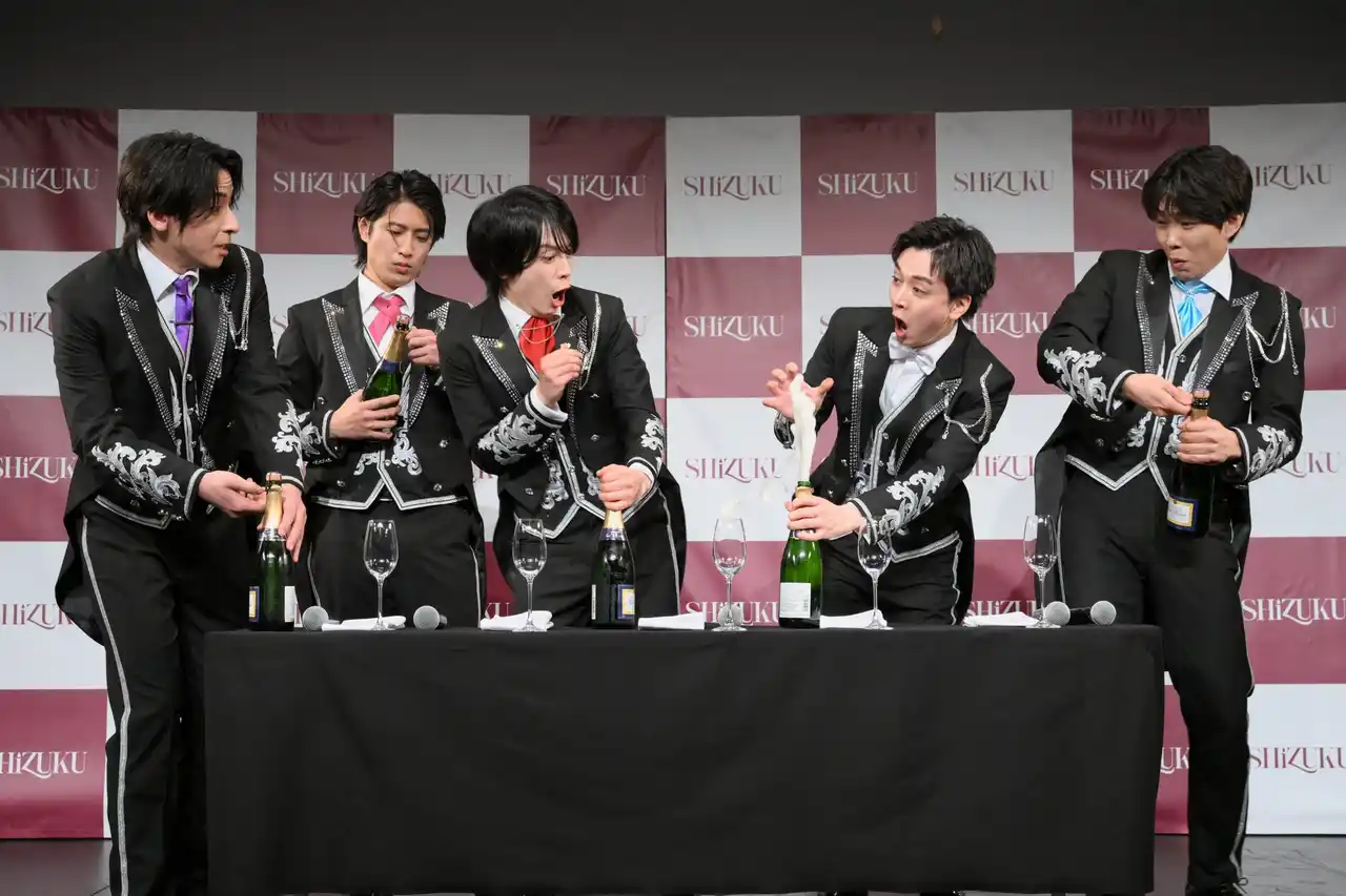 株式会社レプロエンタテインメント(所在地:東京都千代田区、代表取締役社長:本間憲、以下、弊社)は、株式会社つばさレコーズと共同で、ワインがコンセプトの新グループ「SHiZUKU」を結成しました。2026年4月20日(月)に、浅草九劇で行われたグループお披露目会には、「ワインがテーマの男性ボーカルグループオーディション」から選ばれた5名のメンバーが登壇しました。 |