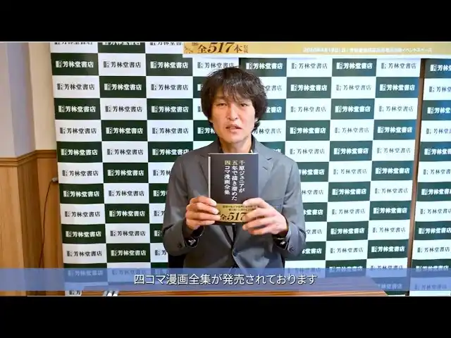 『千原ジュニアが五年で描き溜めた四コマ漫画全集』発売記念記者会見での様子 |