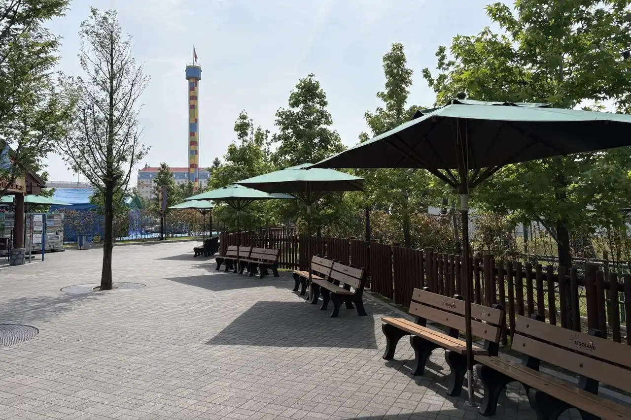 日本一のキッズリゾートを目指すレゴランド(R)・ジャパン・リゾートでは、小さなお子さまを持つご家族でも安心して安全にお楽しみいただけるよう、直径約5mの巨大ファンをはじめ、パーク内各所に大型パラソルやミストの設置など、日差しや暑さ緩和の対策に取り組んでいます。 |