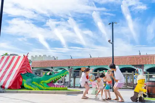 今年の注目は、大人気の巨大水遊びゾーンがリニューアルした「ウォーター・メイズII」。シンボルの“ブルードラゴン(レゴ(R) ブロック約32万個使用)”はそのままに、6つのゾーンが生まれ変わって新登場。ウォーターキャノンから水しぶきが飛び交う中、ドラゴンスライダーやぱちゃぱちゃひろばなど、計6つのゾーンをお楽しみいただけます。また、1日あたり約1,000人分のキャパシティを増やし、より多くのゲストに体験いただけるように進化した、ウォーター・メイズIIは必見です。 |