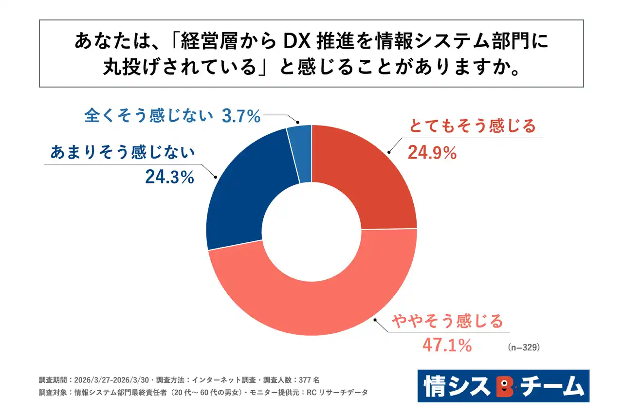 自社のDX推進に課題を抱える情報システム部門の最終責任者の7割以上が、「経営層からDX推進を丸投げされている」と感じている |