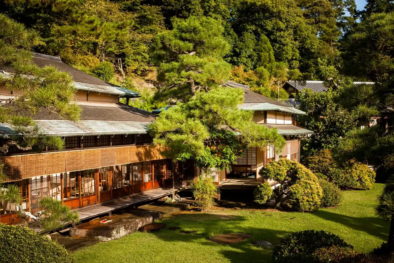 | 三養荘は昭和4年、旧三菱財閥の創始者岩崎弥太郎氏の長男久彌氏の別邸として、京都の庭師小川治兵衛の手による壮大な日本庭園の中に、瀟洒な数寄屋造りの和風建築邸として建設されました。平成29年6月、貴重な国民的財産として文化庁により有形文化財に登録されました。 | |||||||||