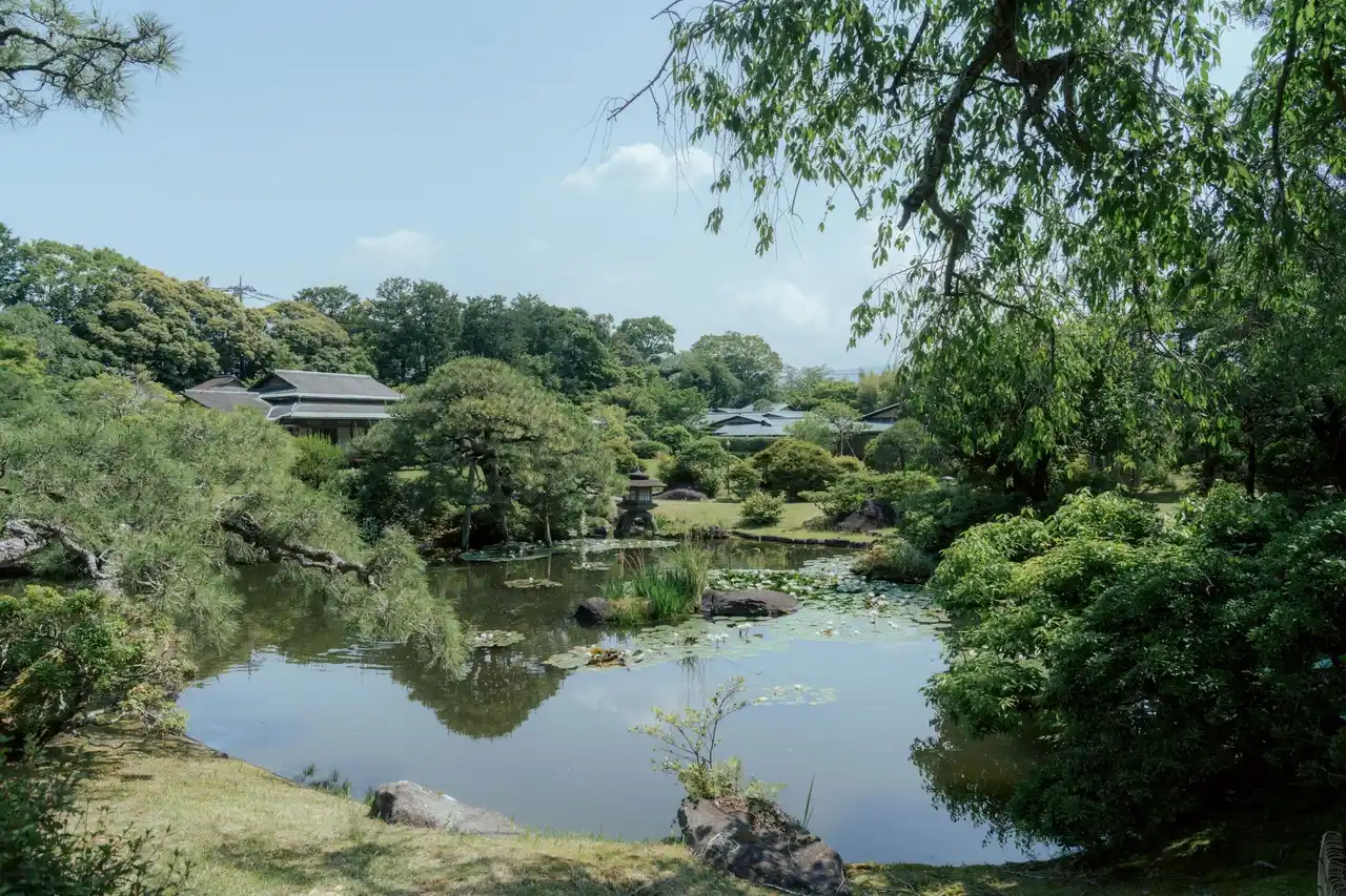 | 三養荘の日本庭園は、池を中心に広がる約3,000坪の回遊式庭園です。京都の庭師・小川治兵衛の手により造られ、四季折々の自然美を楽しめる空間が広がっています。風の音や野鳥のさえずり、水面に映る光までもが、庭の趣を一層に引き立てます。 | |||||||||