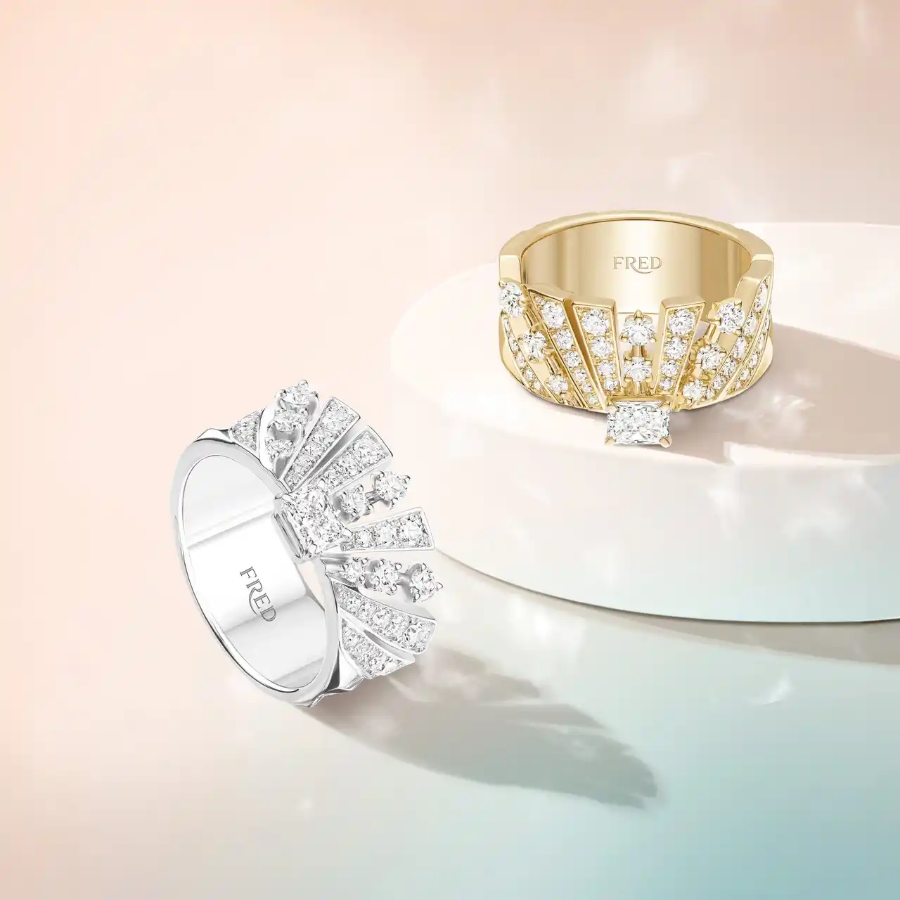 フレッドの「ソレイユ ドール サンライズ」コレクションは、夜明けから正午まで、太陽の光の移ろいを捉えた、太陽のようなジュエラー フレッドの永遠のインスピレーション源です。 |