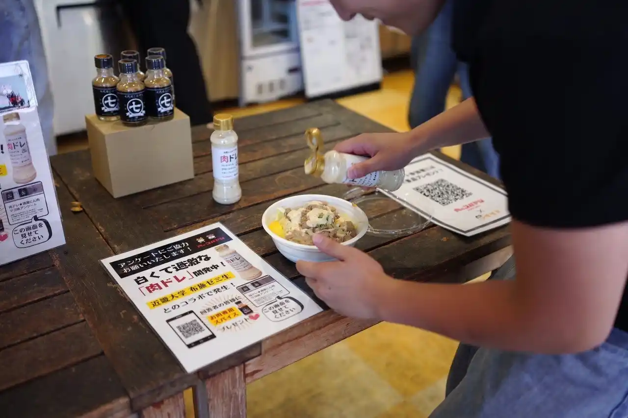 | 食肉卸業の株式会社コバヤシ(所在地:大阪府吹田市江の木町14、代表取締役社長:小林裕一郎、以下、肉のコバヤシ)と、近畿大学経営学部(大阪府東大阪市)経営学科教授 布施匡章ゼミとの産学連携プロジェクトとして、肉にも野菜にも合う新感覚ドレッシング「肉ドレ」を共同開発しました。 | |||||||||