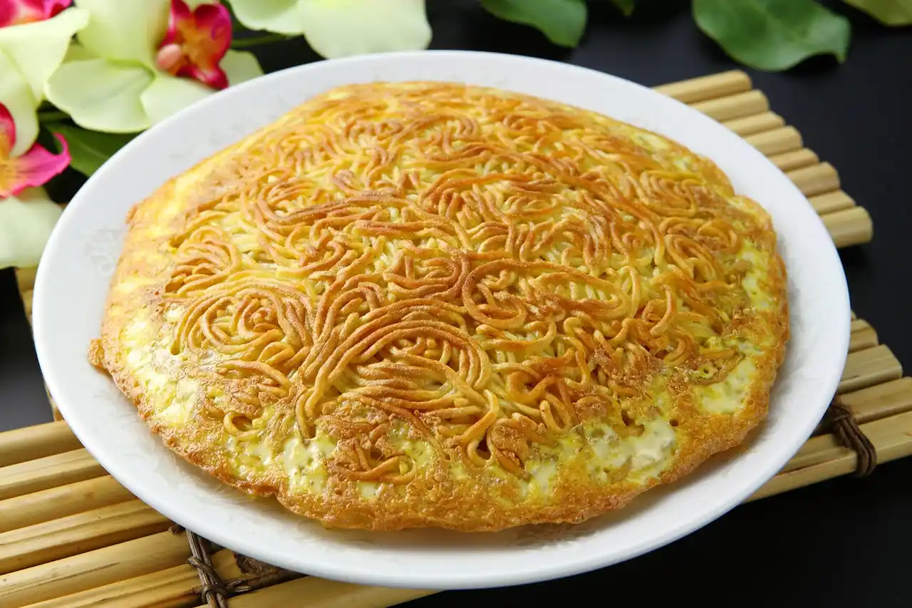 カリッと香ばしく焼き上げた中華麺の中に、とろりとした醤油味の餡を閉じ込めたオリジナル焼きそば。炒めた豚肉、にら、もやし、玉葱などさまざまな具材が包まれている、梅蘭の看板メニューです。 |