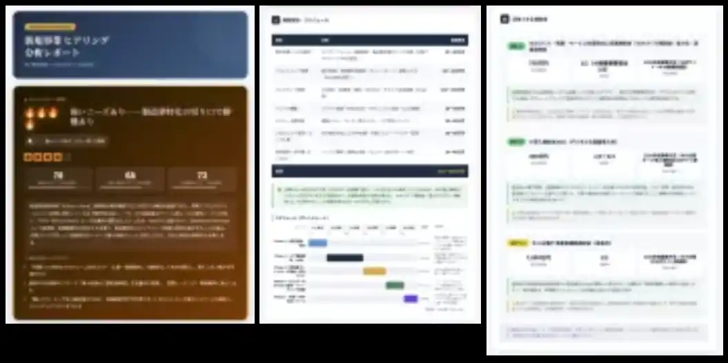 Wur社が提供するMVP事業診断レポートは、新規事業の構想を持った利用者が、その事業構想に関する12の質問に回答することで、Claude AIが事業内容を分析し、構想の整理や事業計画に使えるレポートを即座に生成するサービスです。従来であれば初回のヒアリングから提案書作成まで数日かかっていたプロセスを、約10分で完結させることができます。 |