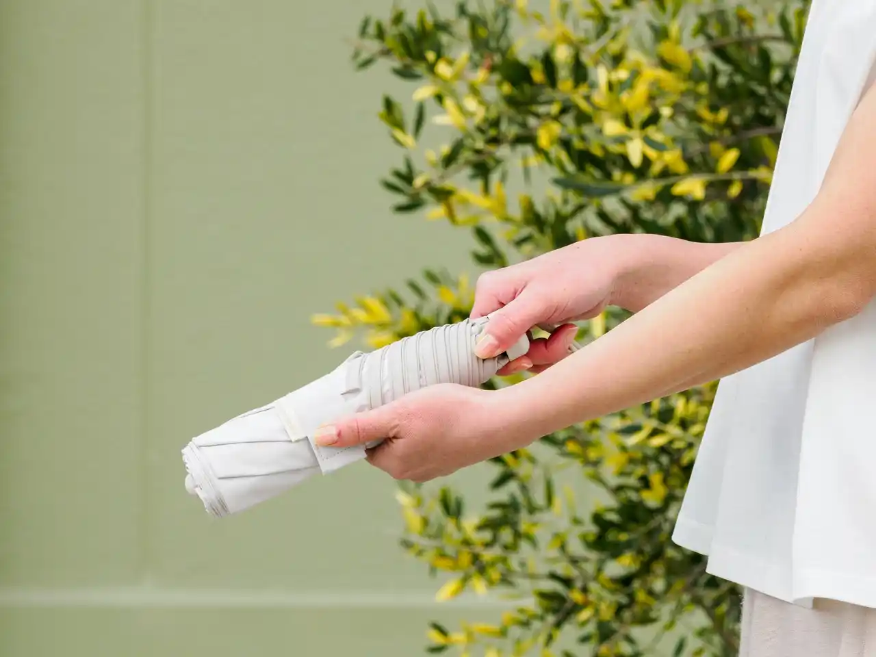| 傘を閉じるとプリーツに沿って生地が整うため、たたむ時にもたついてしまうあのストレスを軽減します。従来の傘よりも扱いやすく、慌ただしい外出先でもサッときれいにたたむことができます。 | |||||||||