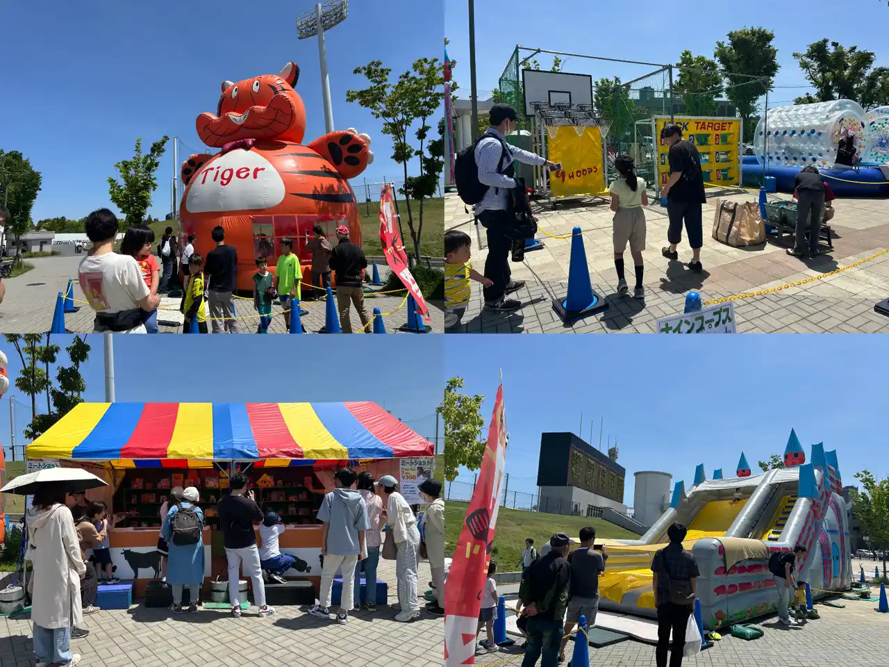 トランポリンやスライダー、アクアボールの「ふわふわ遊具」や、ゲームセンターや射的などの縁日。バスケットフリースローや、サッカーストラックアウトなど、"楽しめるコンテンツ”もご用意しております!! |