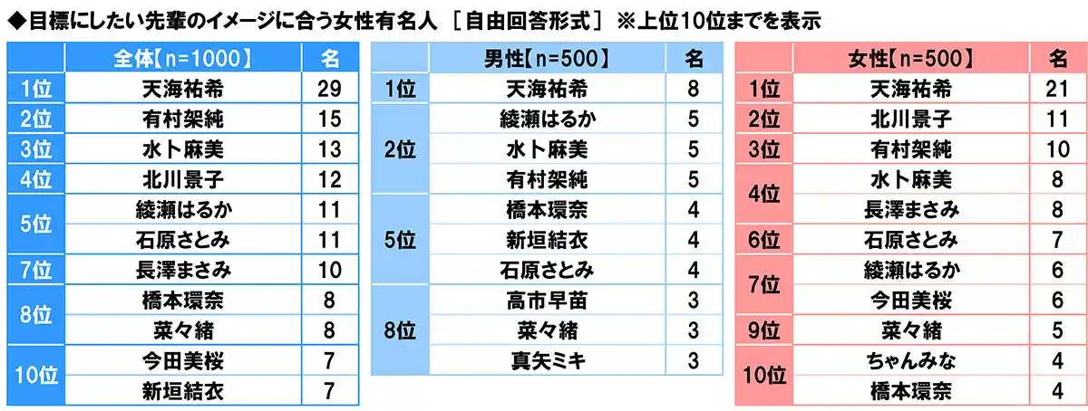・一緒に頑張りたい同期のイメージに合う女性有名人 1位「橋本環奈さん」「今田美桜さん」3位「芦田愛菜さん」 |