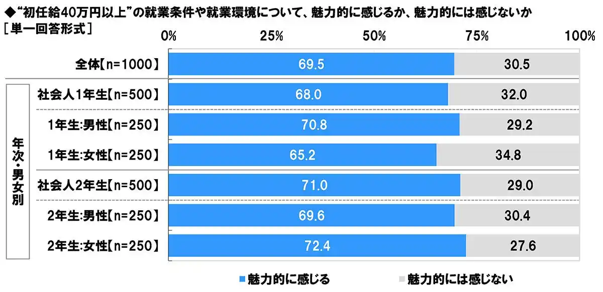 ・“初任給40万円以上”に魅力を感じる? 社会人1年生・2年生の7割が「魅力的に感じる」と回答 |