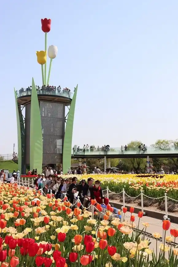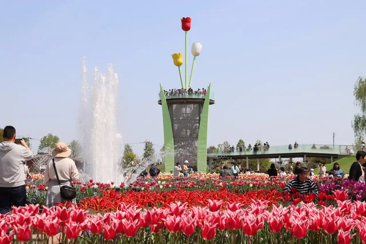 14品種21万本のチューリップ花壇と チューリップタワー |