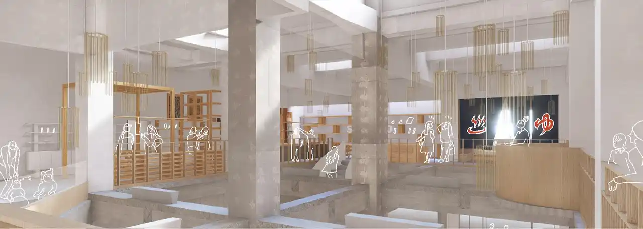 例えばそれは、多目的ホールで新たな学びを得る、地域の歴史を人から学ぶ、サウナをきっかけにコミュニティが生まれる、そうした小さな一歩を積み重ねることで、新しい文化が育っていく場所へと--。 |