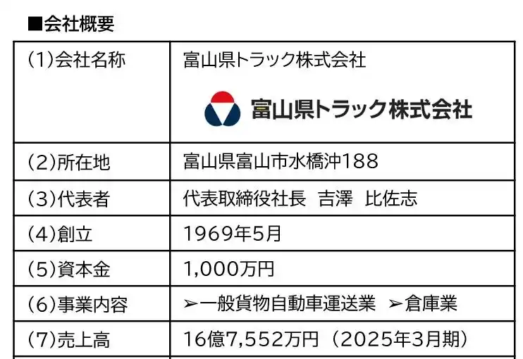 | 富山県トラック株式会社URL https://kentora.co.jp/ | |||||||||