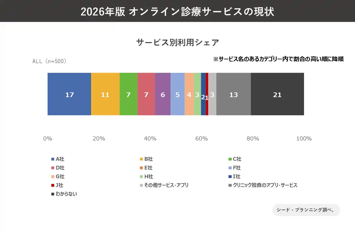 | 【オンライン診療 サービス別利用シェア】 | |||||