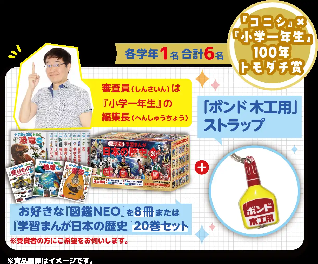| 「コニシ」×「小学一年生」100年トモダチ賞(各学年1名、合計6名) | |||||||||||||||||