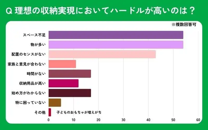 理想の収納を実現する際にハードルが高く感じる部分は?(複数回答可能) |