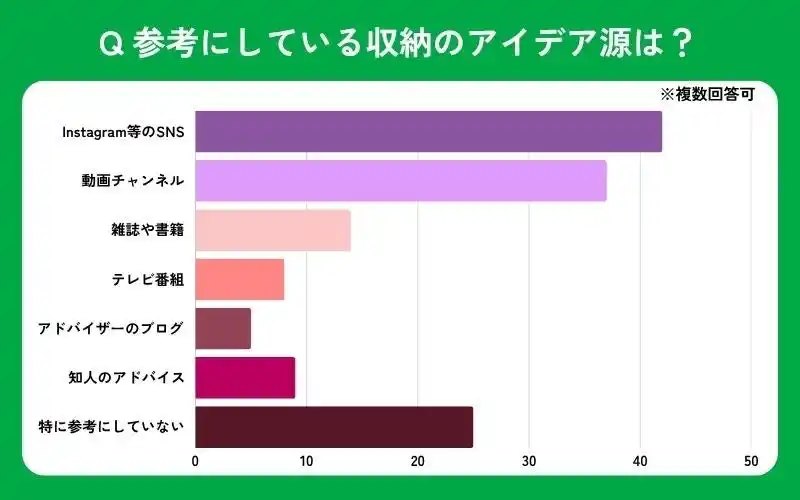 ・全体の42%もの人が、収納のアイデア源として「InstagramやPinterestなどのSNS」を活用している。 |