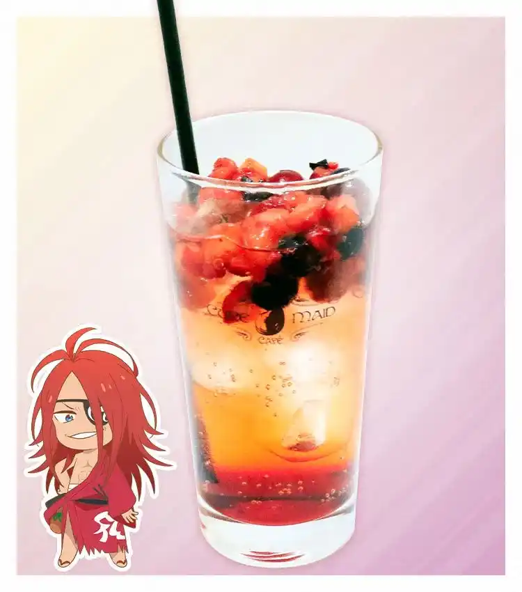 アニメ10周年記念に、華やかにアレンジしたリンガジュース。思い出を振り返りながら楽しめる一杯。 |
