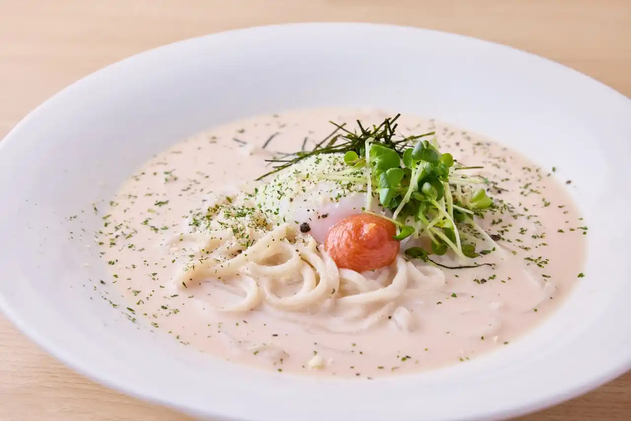 純白のベールに包まれた「白いカレーうどん」と「白い明太子クリームうどん」 |