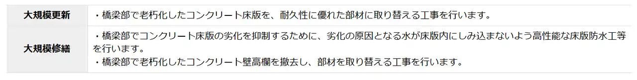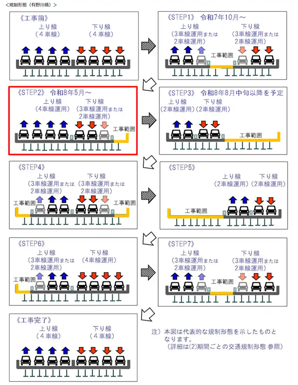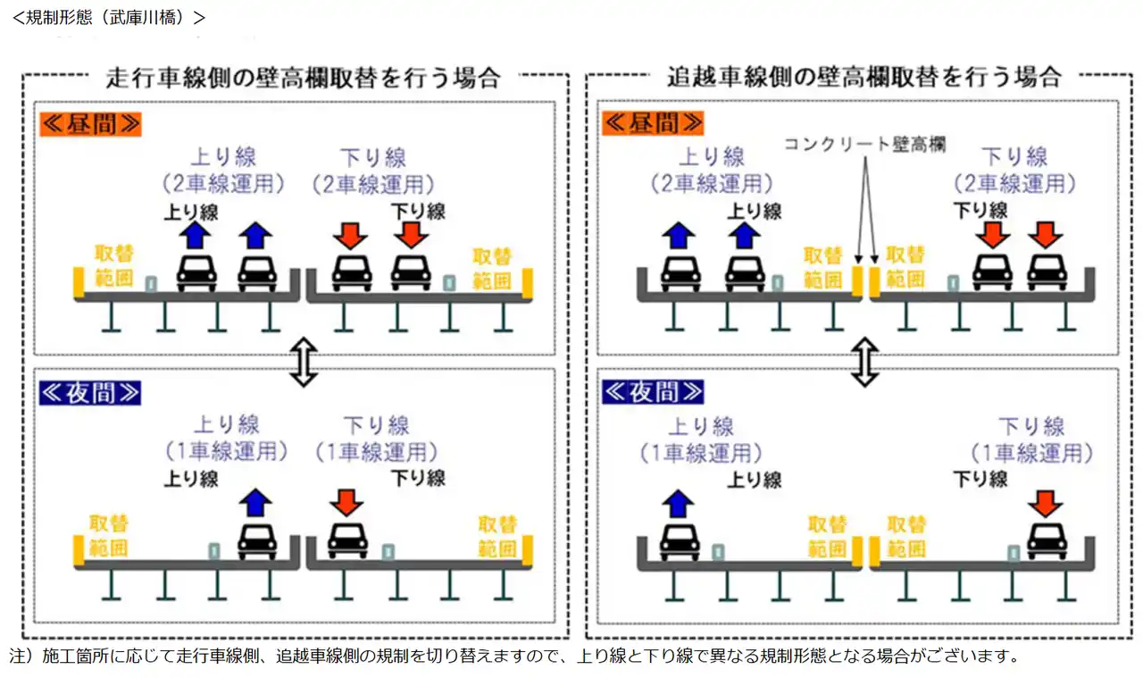 高速道路をご利用のお客さまや沿道の皆さまには、交通規制に伴う渋滞やう回によりご不便、ご迷惑をおかけいたしますが、引き続きご理解とご協力をお願いいたします。 |