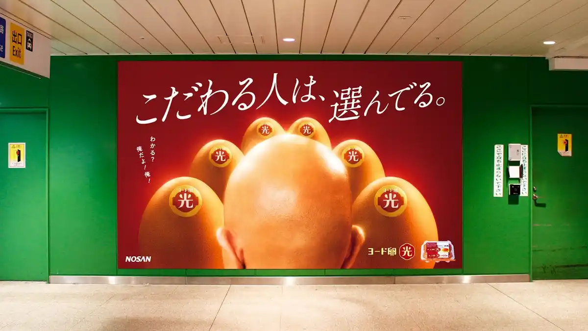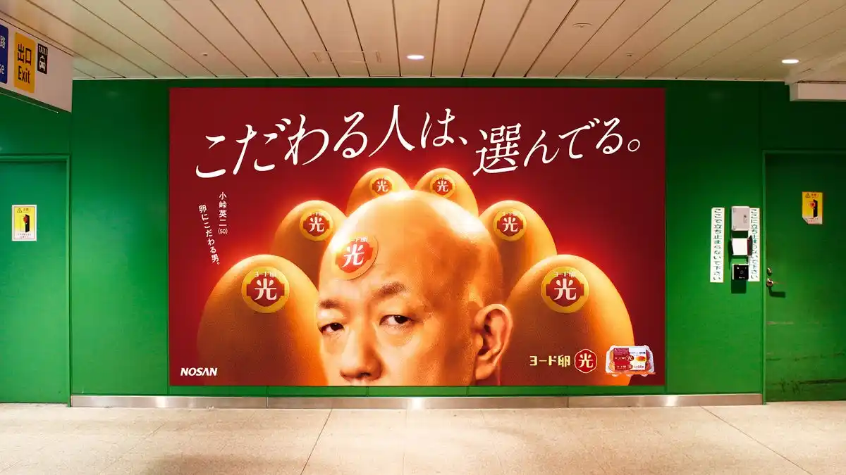 「ヨード卵・光」の50周年に合わせて、JR新宿駅東改札外GREENシートにてOOH広告を掲出しています。50周年を迎える「ヨード卵・光」と50歳を機に益々こだわりが光る小峠英二さんのインパクトある広告にご注目ください。 |