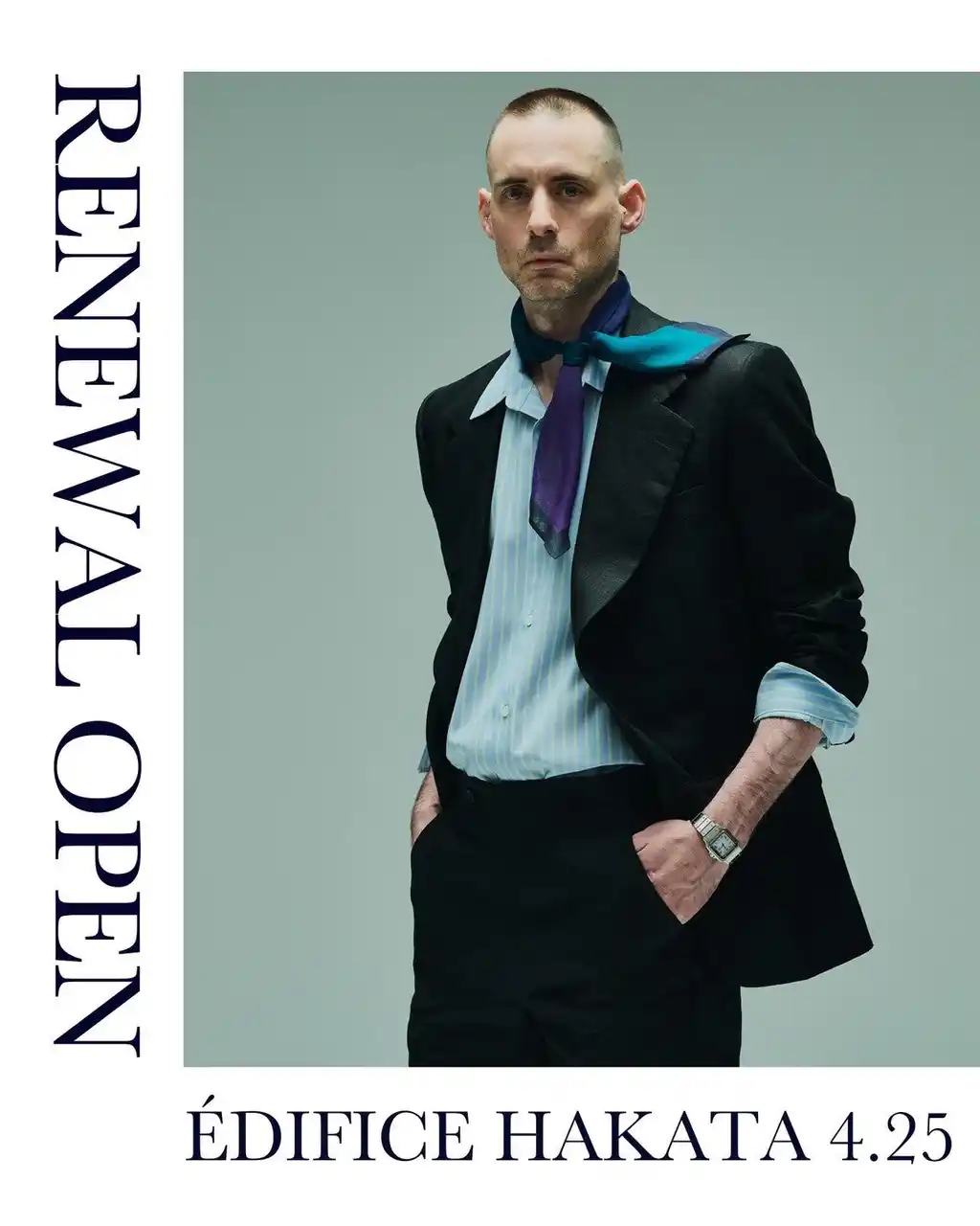 株式会社ベイクルーズ(本社: 東京都渋谷区、取締役CEO: 古峯 正佳)が運営する「EDIFICE(エディフィス)」アミュプラザ博多店は、4月25日(土)にリニューアルオープンする。 |