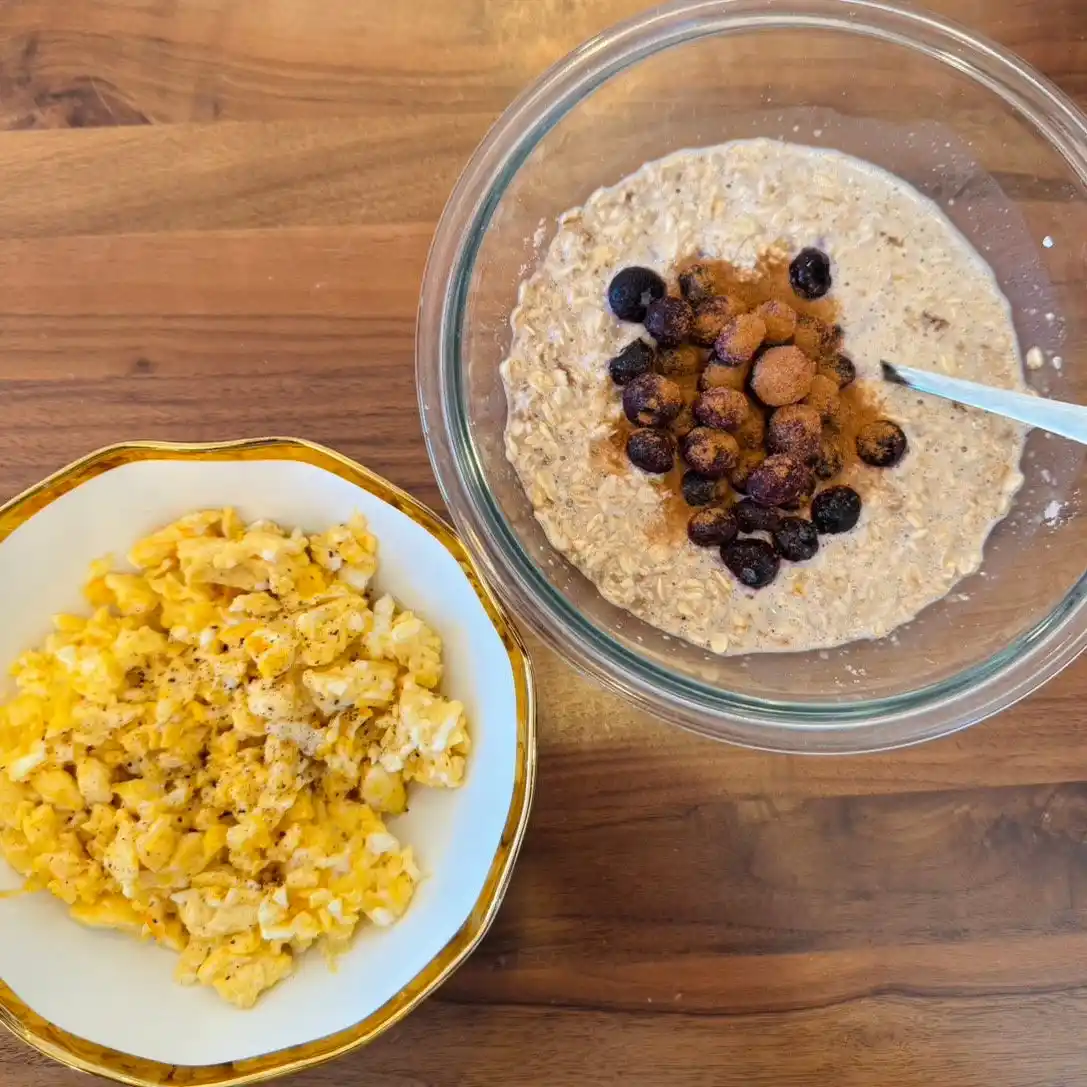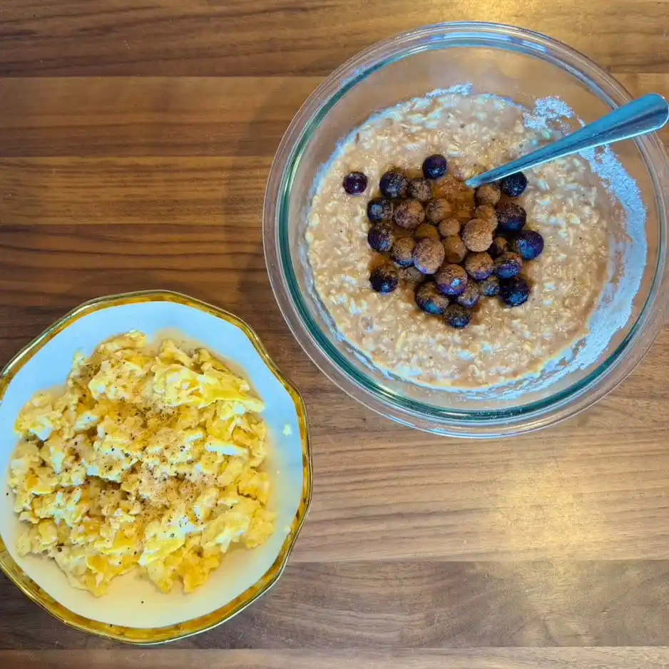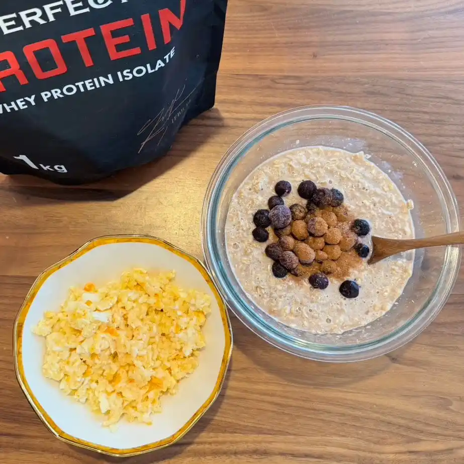 プロテインのフレーバーを気分や目的に合わせて変えたり、オフシーズン・オンシーズン・大会前といったコンディションに応じてオートミールの量を微調整することはあるものの、基本となる構成は常に同じ。 |