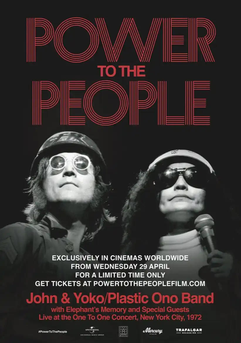 ジョン・レノンがビートルズ解散後に行った唯一のフル・コンサート、”ワン・トゥ・ワン・コンサート”が最高の映像と音響でスクリーンに甦る、映画『パワー・トゥ・ザ・ピープル:ジョン&ヨーコ・ライヴ・イン・NYC』。 |