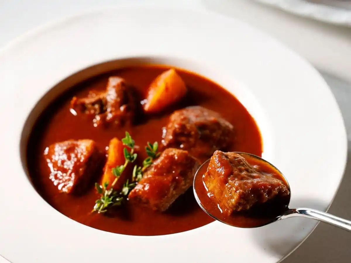 ごろっと大きめにカットした柔らかな近江牛を贅沢に使用。96時間、自家製デミグラスで丁寧に煮込み、旨みを閉じ込めた濃厚でコク深い一皿。 |