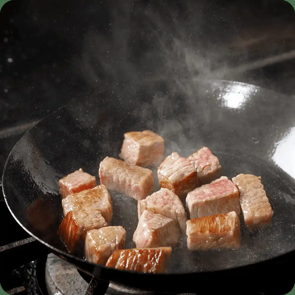 厳選された近江牛を使用し、肉本来の旨味とコクを最大限に引き出しています。 |