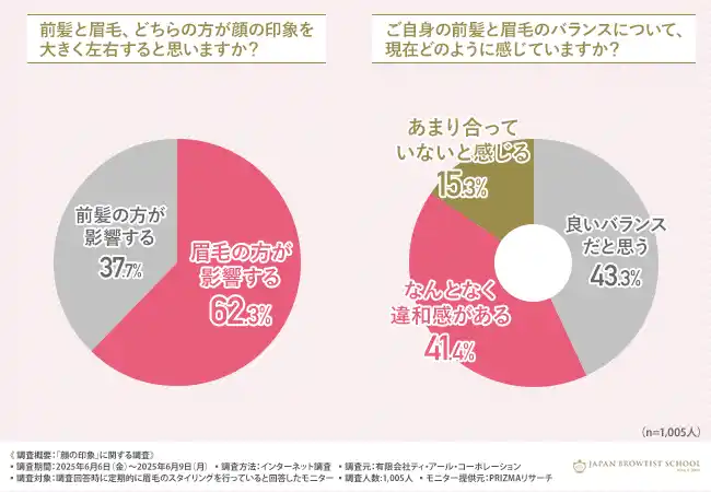 こうした眉毛と前髪の影響力を踏まえ、「自身の前髪と眉毛のバランス」についても尋ねたところ、下記のような回答結果となりました。 |