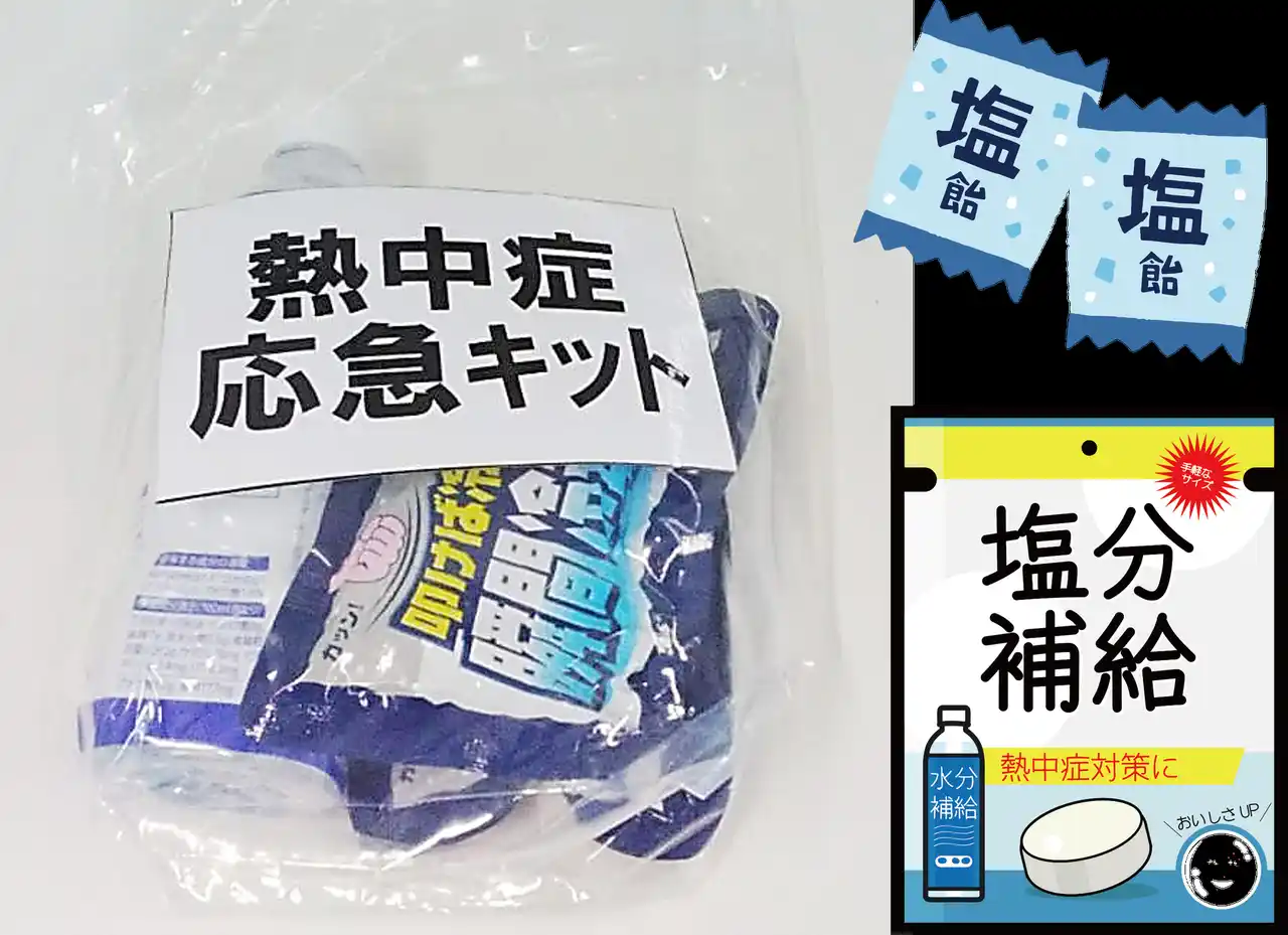 また、塩飴や塩タブレットを適宜配布することでも、熱中症を予防しています。 |