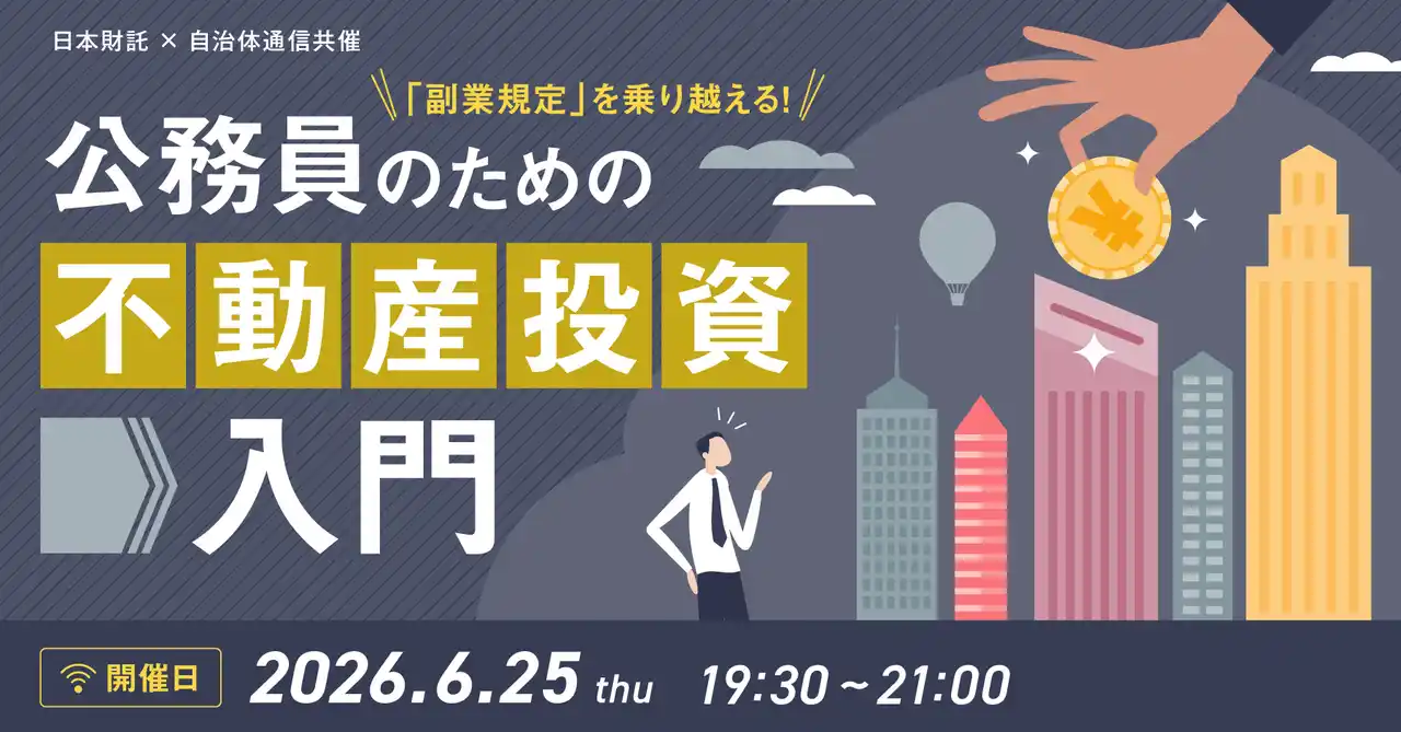 イシン株式会社(本社:東京都港区、代表取締役社長:西中 大史、証券コード:143A)が運営する公民共創の先進事例を紹介するメディア『自治体通信』は、2026年6月25日(木)に日本財託×自治体通信共催セミナー「『副業規定』を乗り越える!公務員のための不動産投資入門」を開催いたします。 |