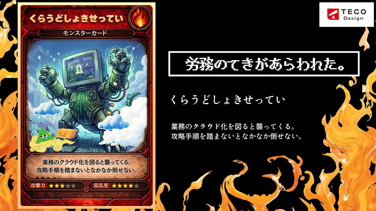 人事労務の“あるある課題”を敵キャラ化。 参加者は、自社がいま向き合っている課題を整理しながら見ることができます。 |