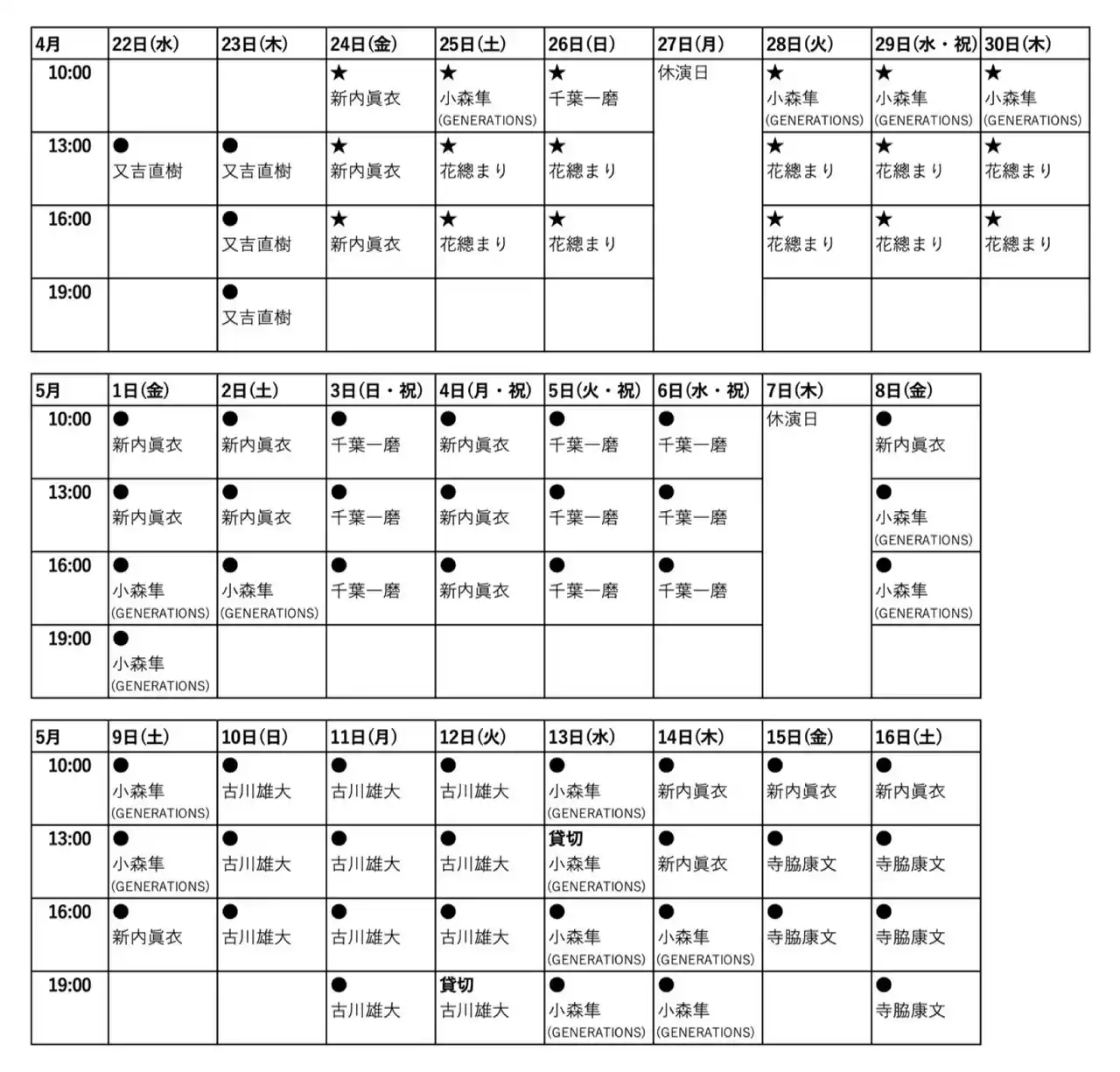 | ■上演スケジュール | |||