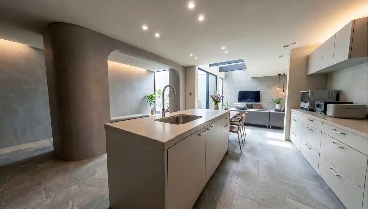 豊田の街に誕生したのは、洗練されたホテルのラウンジを彷彿とさせる、上質な邸宅。 玄関を開けた瞬間に広がる、視線が抜ける一面ガラス張りの開放感と、石材の重厚な質感があなたを迎え入れます。 家族との団らんも、自分を研ぎ澄ますひとときも、ここで。 |