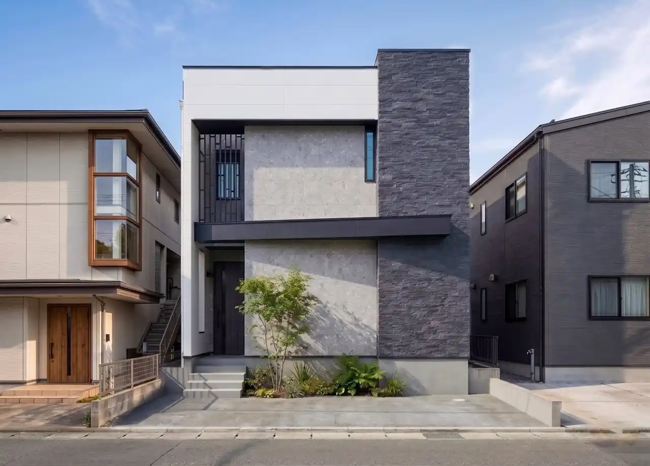 石目調のタイルと格子で水平ラインが際立つ、洗練された外観。 素材一つひとつにこだわった「本物の質感」を、実際に見て、触れて、確認できます。 |
