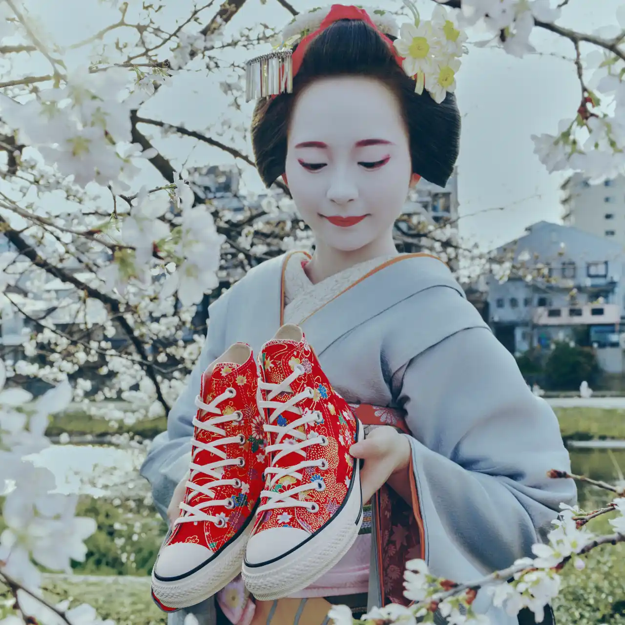 本商品は、「京都一布や」とCONVERSEの定番モデル「ALL STAR」がコラボすることで、伝統的な和柄や風合い豊かな生地を随所に取り入れ、京都ならではの布文化の魅力が伝わるスニーカーデザインとなっております。 |