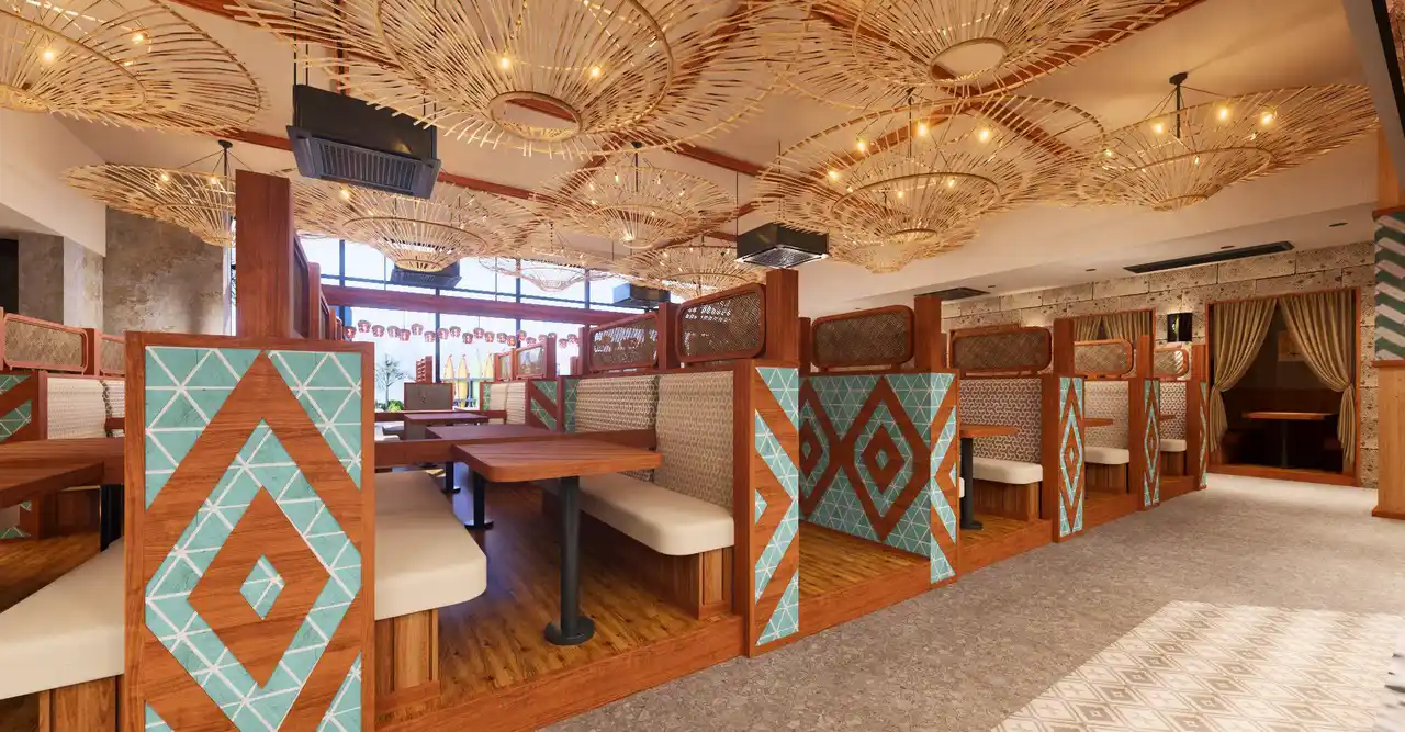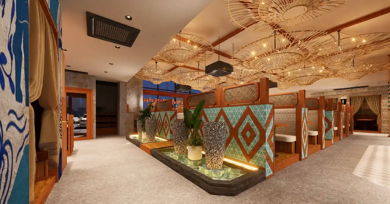 ・バリ島をイメージした内外観のリゾートレストラン |