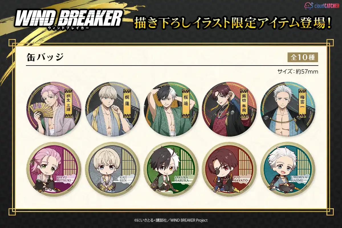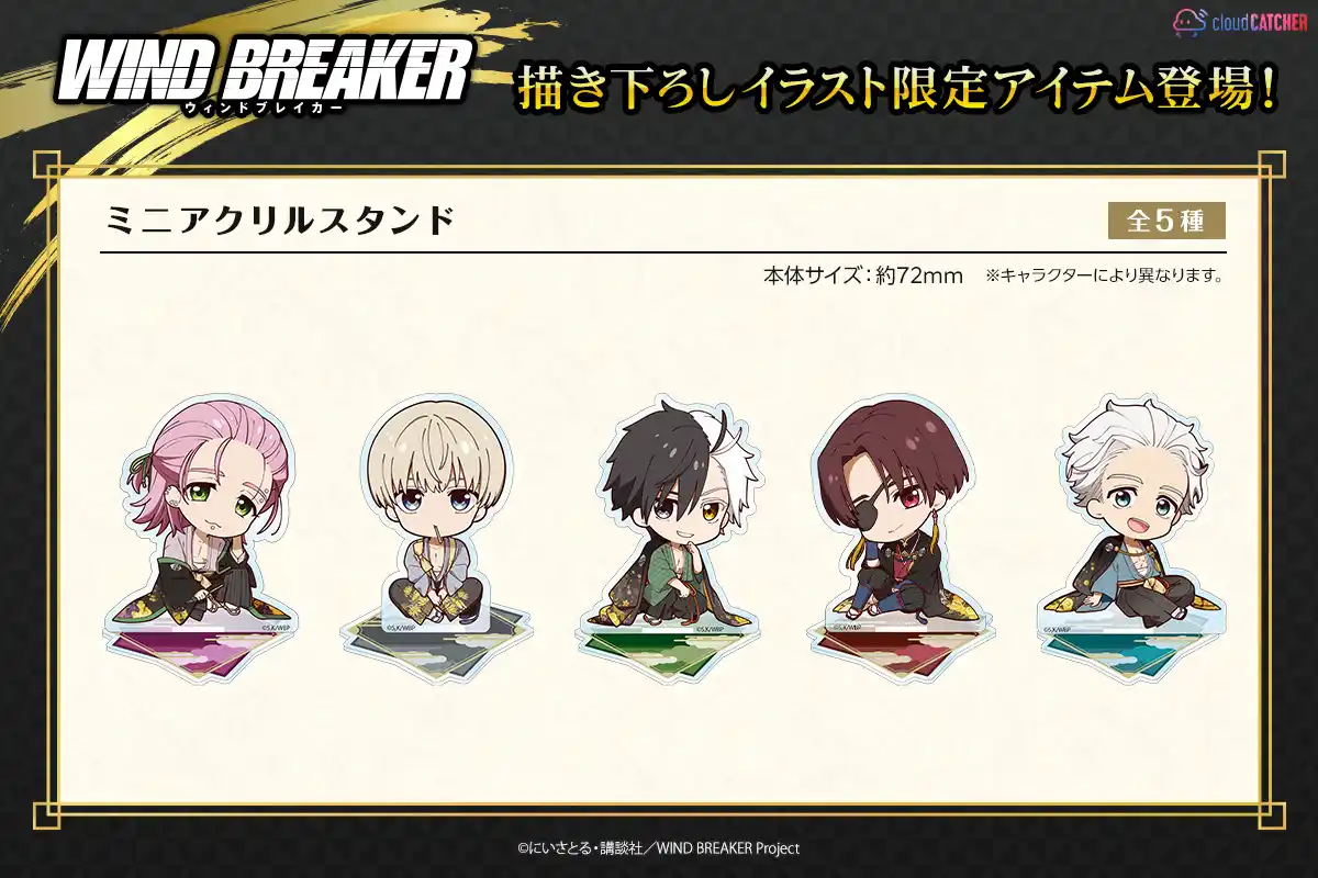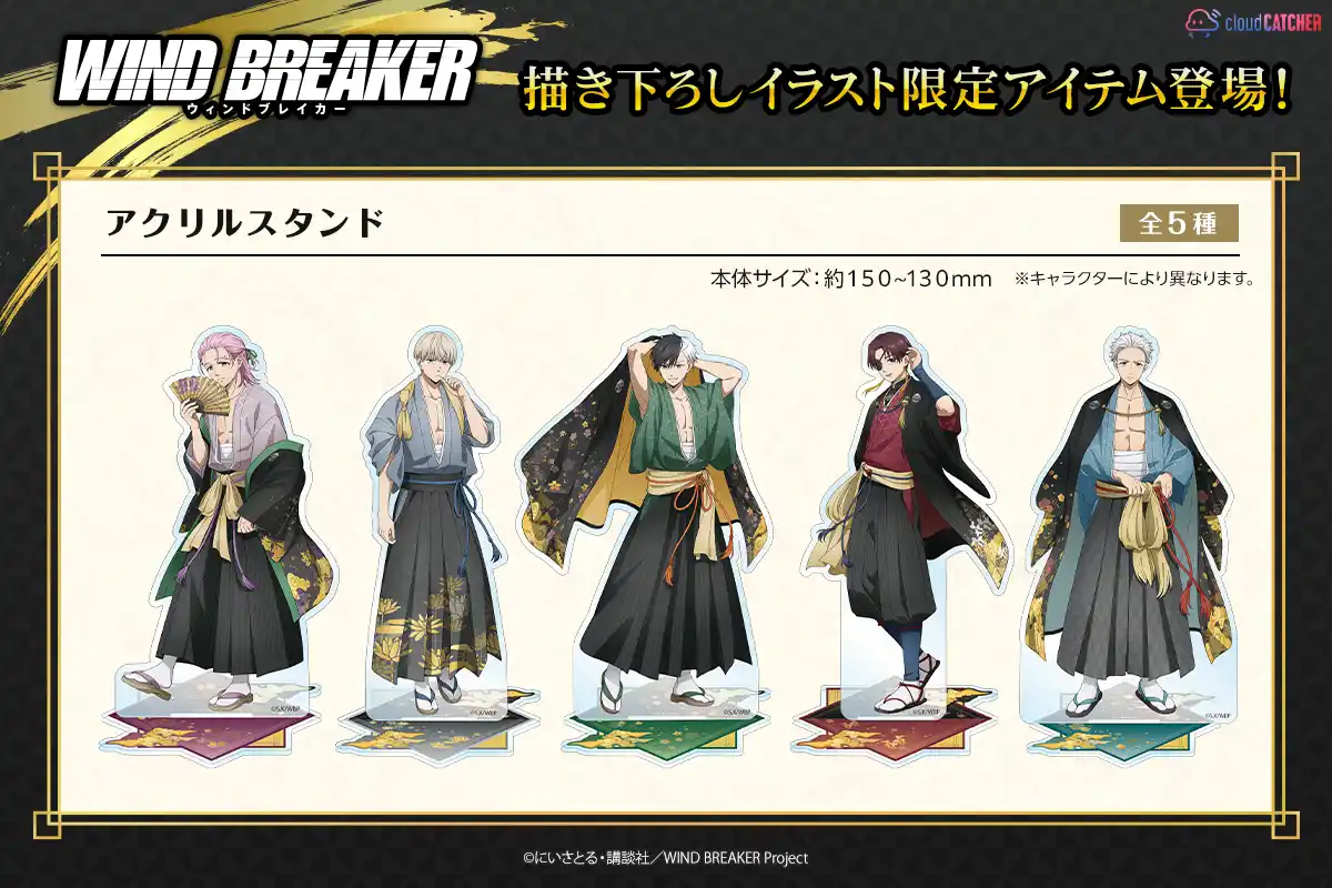 TVアニメ『WIND BREAKER』よりボウフウリンのメンバー5名がオンラインクレーンゲームアプリ『クラウドキャッチャー』の限定プライズ景品となって登場します。 |