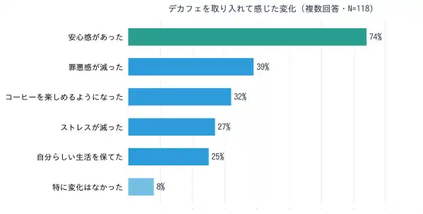 安心感があった / ストレスが減った / 罪悪感が減った / コーヒーを楽しめるようになった / 自分らしい生活を保てた / 特に変化はなかった / その他