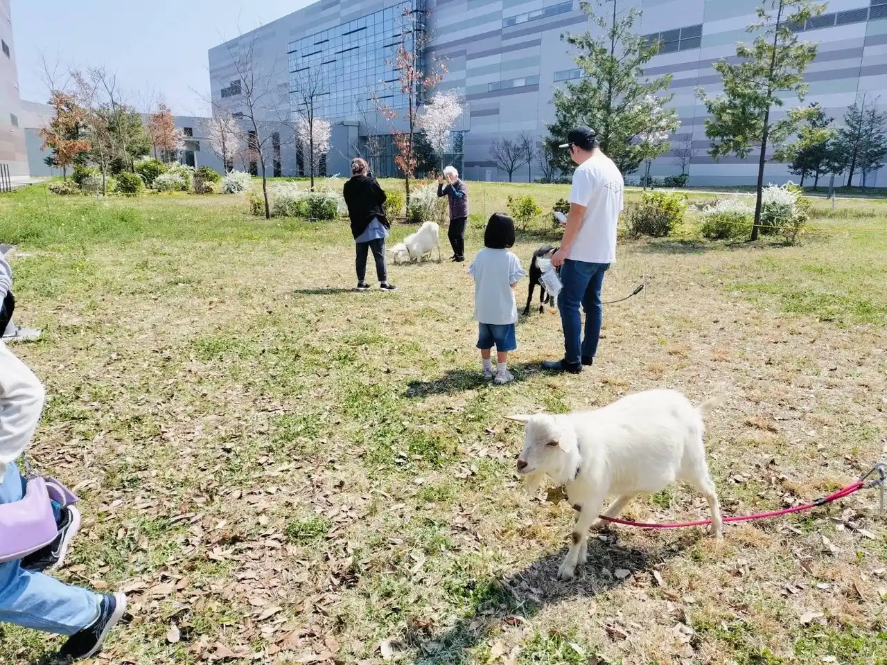 同イベントは、地域住民や社員の家族を招いて開催される年1回の催しで、会場内では出店や動物とのふれあい企画などが実施されました。 当社は同イベントにおいてヤギの貸し出しを行い、来場者向けにヤギとのふれあい体験やガチャガチャ形式で楽しめる餌やり体験などのコンテンツを提供しました。 |