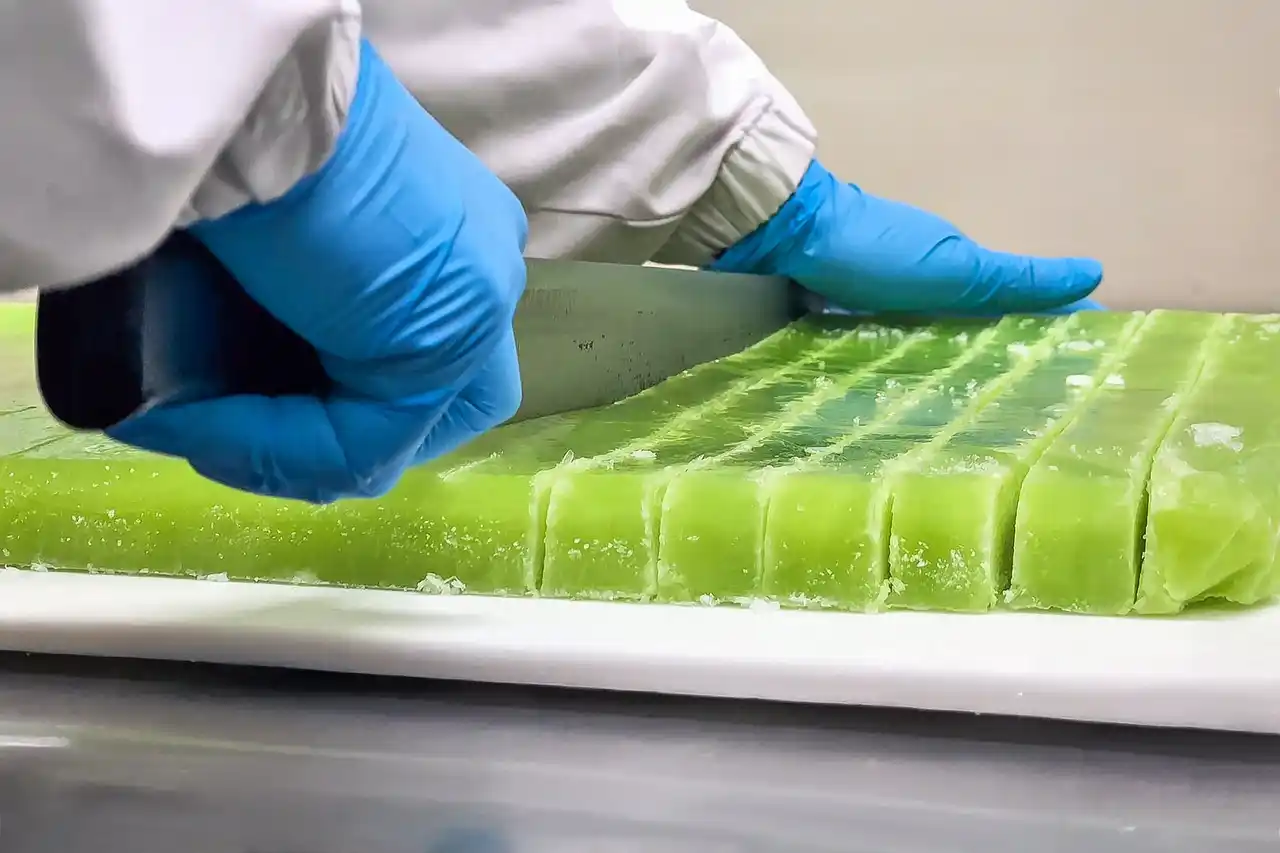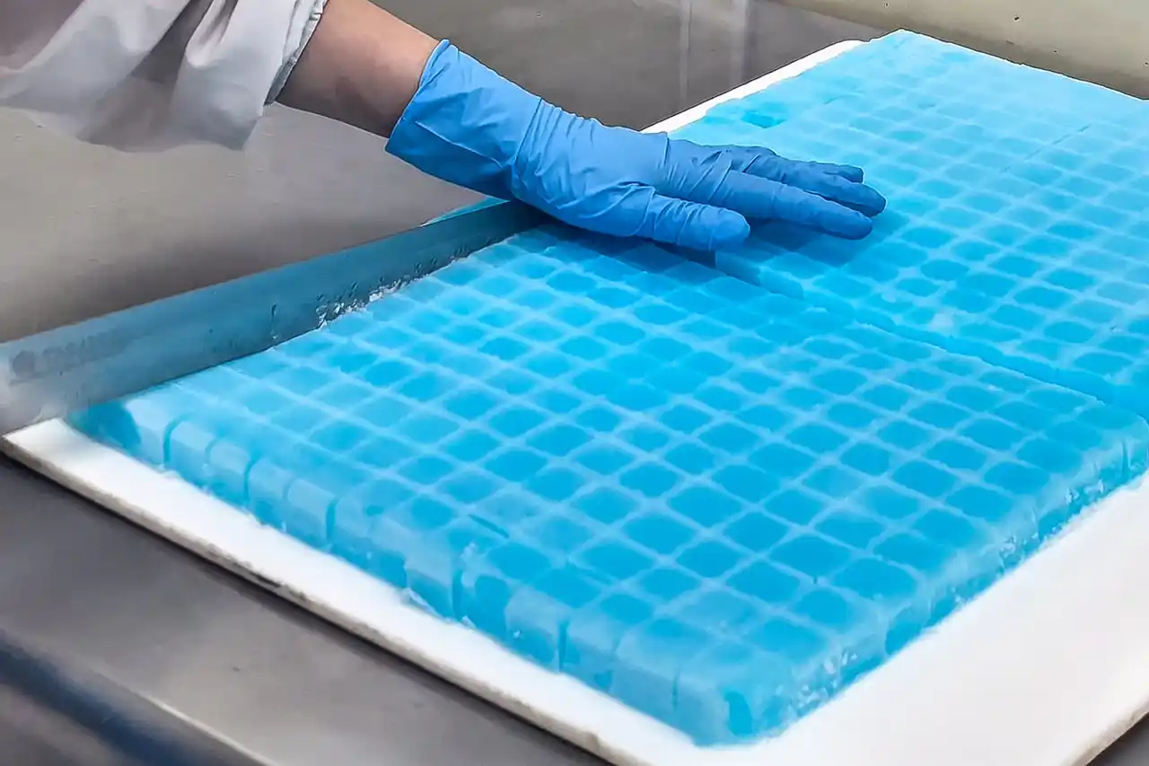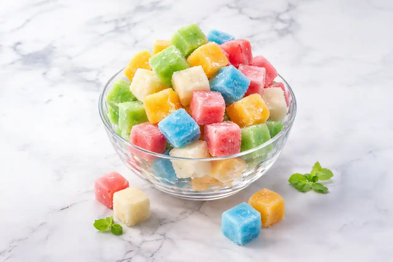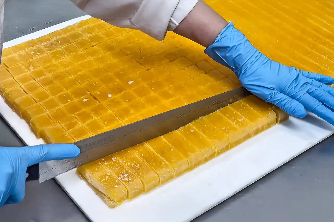 仕上げたゼリーは、マイナス60℃の急速冷凍庫で一気に凍結。この驚異的な温度で鮮度を封じ込めることで、解凍時にもドリップ(余分な水分)を出さず、フルーツ本来のみずみずしい食感と栄養価をそのままお届けすることを可能にしました。 |