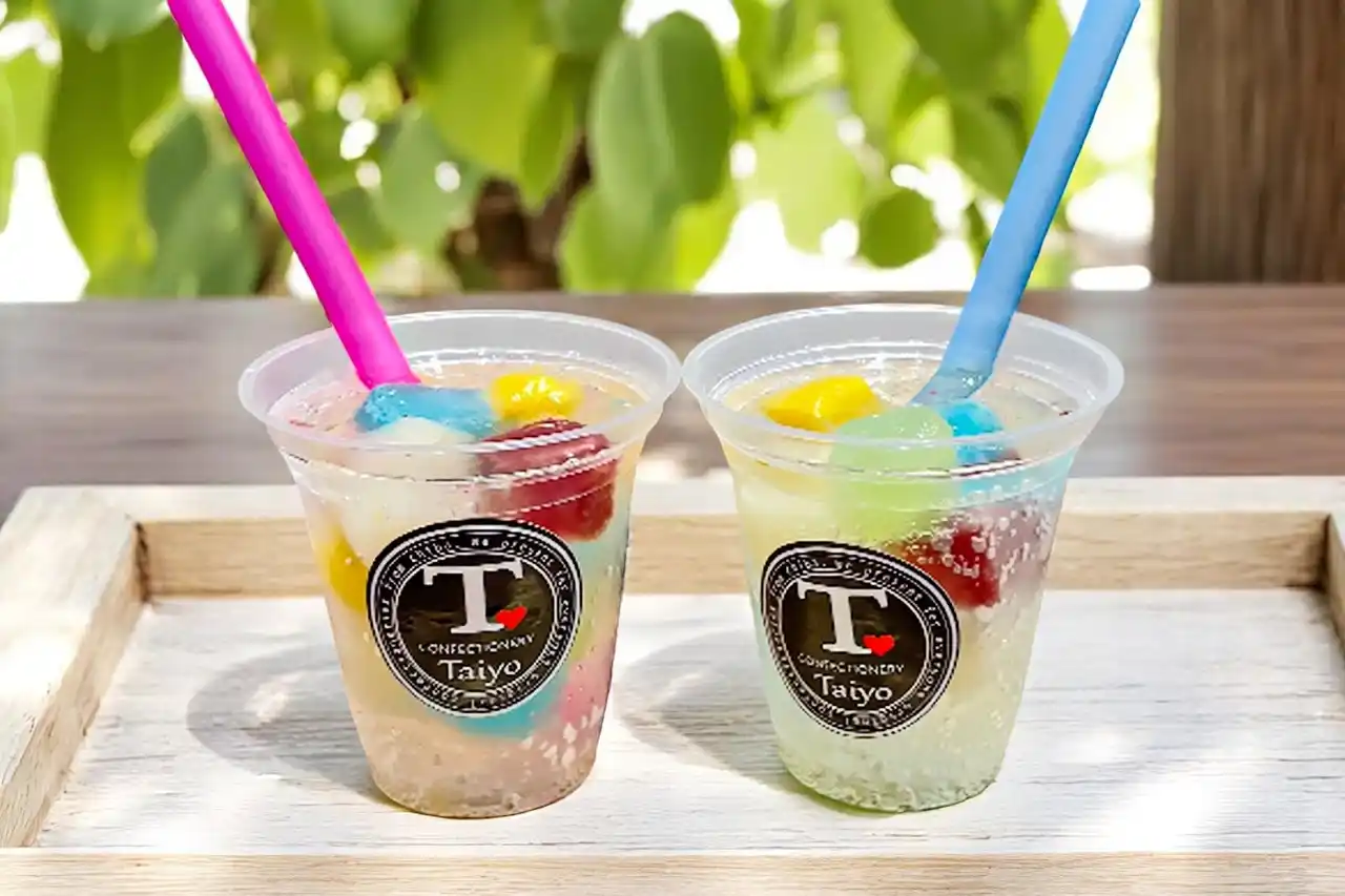 株式会社太陽社(所在地:千葉県匝瑳市飯倉293、代表取締役:片岡正裕)が展開する千葉県で長年愛される菓子店「お菓子のたいよう」は、春夏に連日完売する人気の“キラキラ宝石ゼリースイーツ”の待望の新作として、ブランド初となるデザートドリンク「カラフルジュエルシェイク」を、4月24日(金)より夏季限定で販売いたします。 |