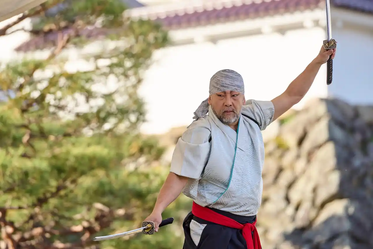 鶴ヶ城の天守閣の懐にある本丸芝生広場では、侍を感じさせるステージパフォーマンスやワークショップが開催されます。殺陣の演舞が披露される「剣技衆かむゐ」のパフォーマンスをはじめ、薙刀やよさこいなど、迫力あるステージパフォーマンスは必見です。 |