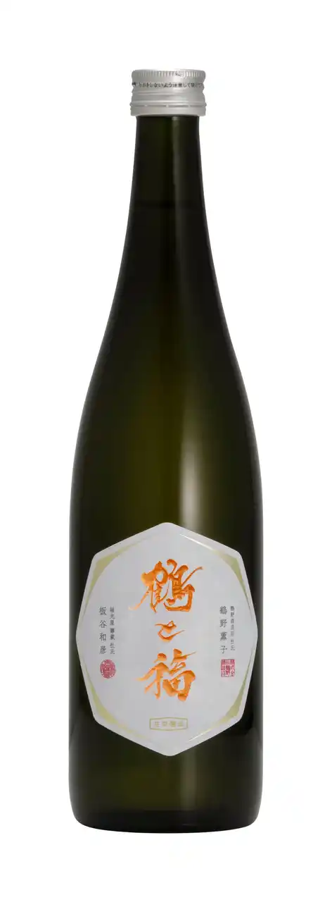 「鶴と福」は両蔵の名頭を取り命名。今年も吉祥八角のラベルに両杜氏名と落款を共に配しました。品格のある黒色のボトルが力強く艶やかなオレンジ色の書を引き立てます。 |