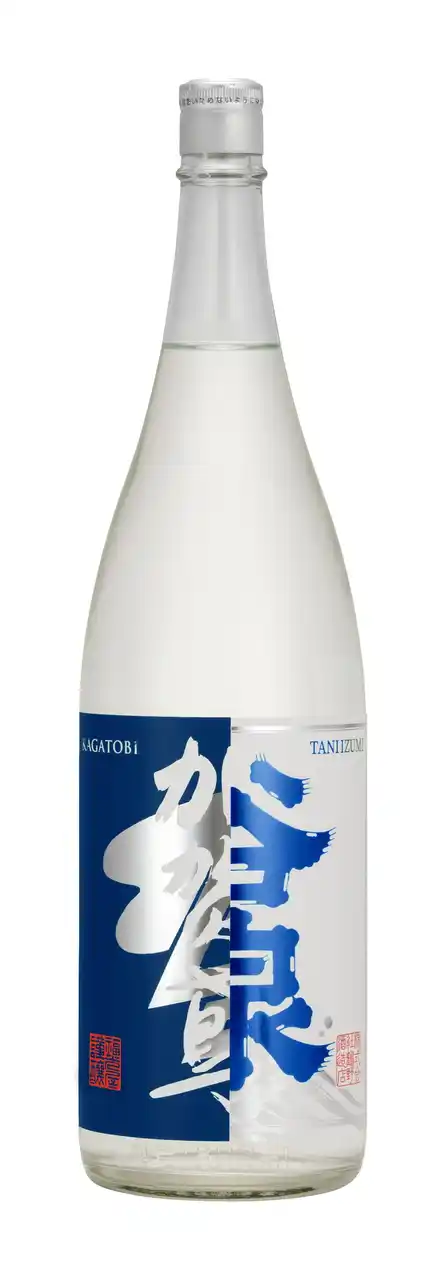 「谷泉 × 加賀鳶」は両蔵の代表銘柄から命名。「谷泉 無濾過生原酒」シリーズのラベルデザインから着想を得て、両銘柄を左右に配し、ブレンド比率「1対1」と一体感を表しています。軽快さを印象付けるブルーとシルバーを基調としたカラーリング、透明ボトルを採用しました。 |