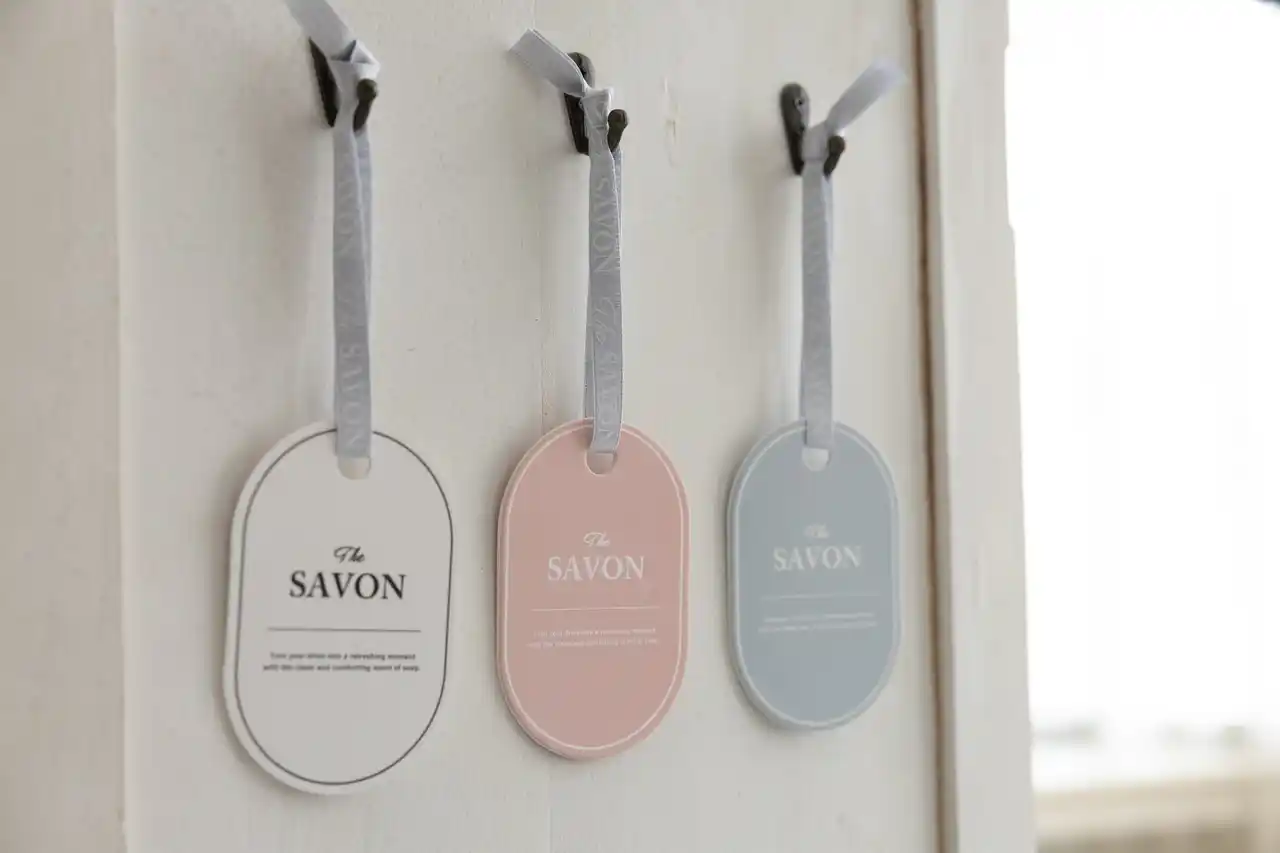 清潔感と穏やかさを感じさせる“サボンの香り”を視覚的にも表現するため、落ち着いた印象を与える彩度の低いニュアンスカラーを採用しています。 空間に自然と溶け込み、上品で心地よい雰囲気を演出します。 柔らかな色合いが「安心感」「清潔感」「温もり」を演出し、サボンの魅力をより一層引き立てます。 |