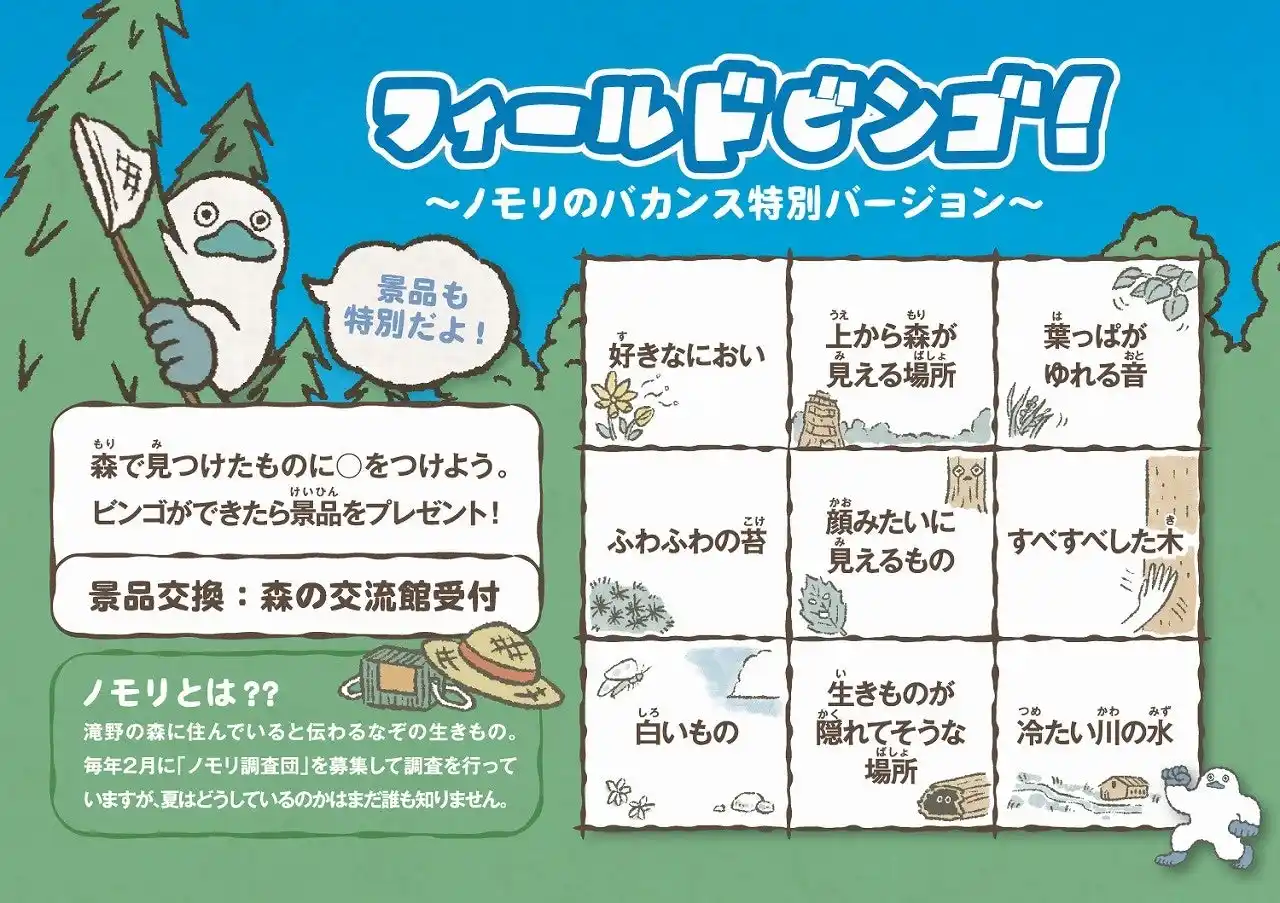 | 滝野の森に住んでいると伝わるなぞの生きもの「ノモリ」のカードをプレゼント! | |||||||||||||||